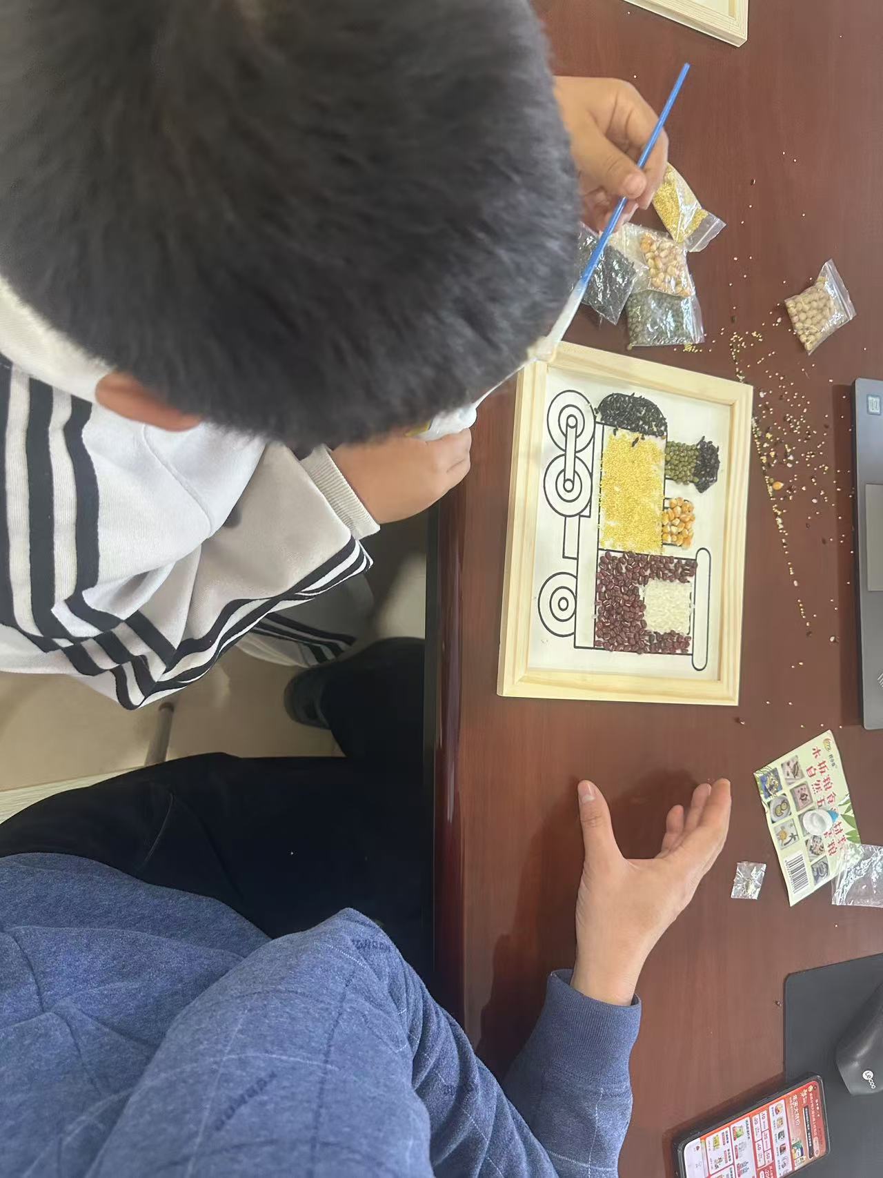 在医务人员的带领下,小朋友们不仅学习了中药的基本知识,还亲手制作了粮食画,通过实践加深了对中药的理解。陈皮、八角、丁香、人参……这些药材的性味、归经、功效及注意事项,都在轻松愉快的氛围中被孩子们所掌握。