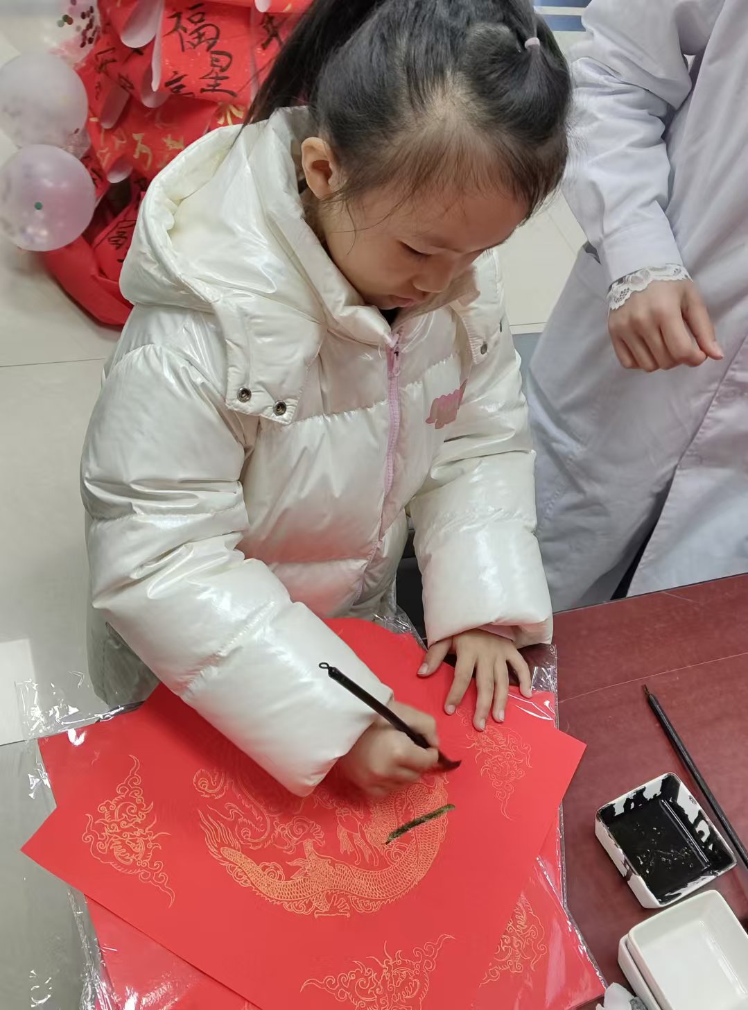 活动在欢声笑语中拉开序幕,首先进行的是打气球环节。彩色的气球在空中飘扬,孩子们兴奋地追逐着,家长们则在一旁加油助威,现场气氛热烈。接下来是写福字环节,小朋友们在大人的指导下,用毛笔认真地书写着福字,虽然笔触略显稚嫩,但每一笔每一划都充满了对新年的期待和祝福。