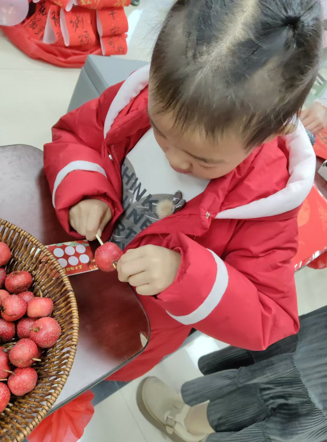 紧接着是制作糖葫芦环节,孩子们在家长的协助下,将串好的山楂裹上糖浆,制作出美味的糖葫芦。他们品尝着自己的劳动成果,脸上洋溢着满足的笑容。随后,大家一起动手剪窗花,孩子们充分发挥想象力,剪出了各式各样的窗花,为即将到来的新年增添了一抹亮色。